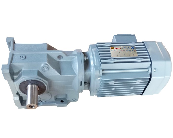在工作時,K系列減速機(jī)的輸入軸帶動齒輪旋轉(zhuǎn),齒輪轉(zhuǎn)動時帶動錐齒輪一起旋轉(zhuǎn)。錐齒輪的軸線與輸出軸的軸線相交,錐齒輪的輪緣與斜齒輪的齒輪相嚙合。由于錐齒輪的齒數(shù)和斜齒輪的齒輪螺旋角度的不同,使得輸出軸的轉(zhuǎn)速降低,同時扭矩增大,從而實現(xiàn)減速的目的。
