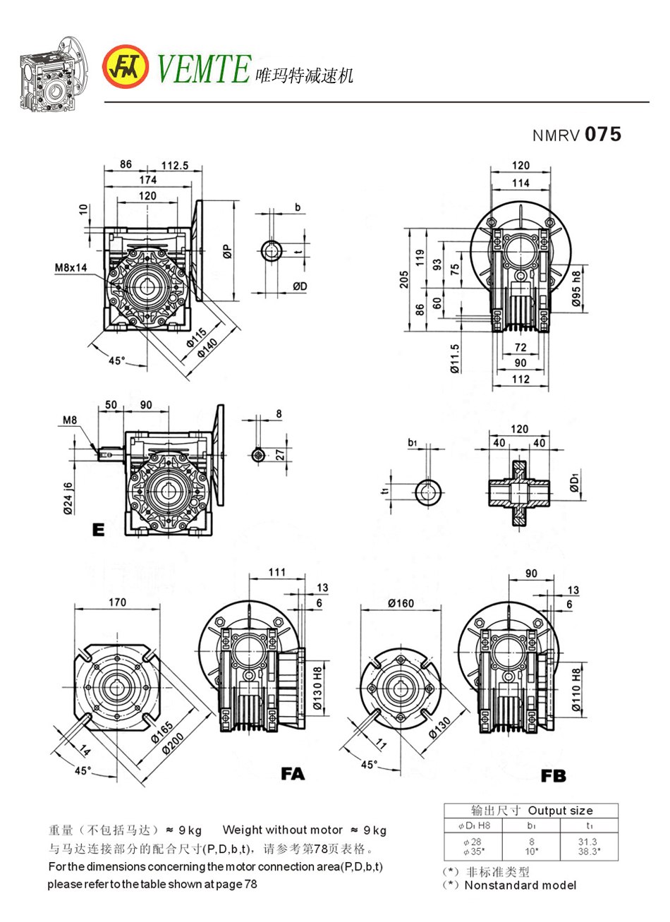NMRV075減速機(jī)-技術(shù)參數(shù):