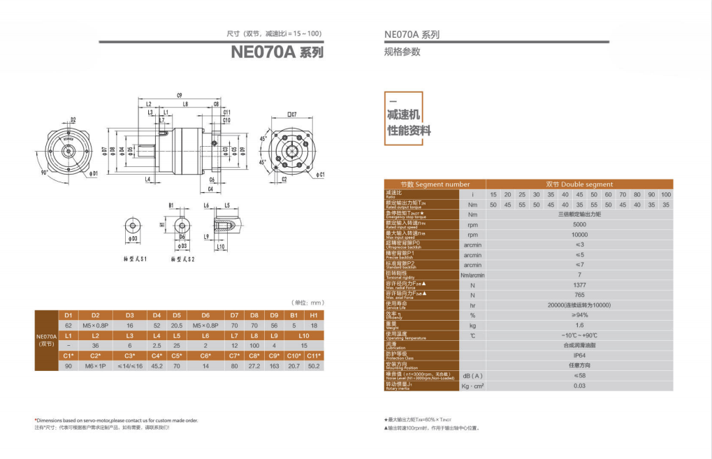 NE070A系列超精密背隙行星減速機系列(P0): NE070A系列精密背隙行星減速器系列(P1): NE070A系列標(biāo)準(zhǔn)背隙行星減速機系列(P2):