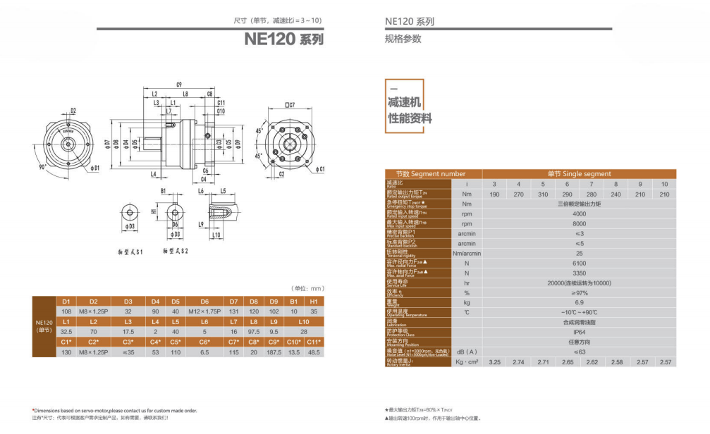 NE120系列超精密背隙行星減速機系列(P0): NE120系列精密背隙行星減速器系列(P1): NE120系列標準背隙行星減速機系列(P2):
