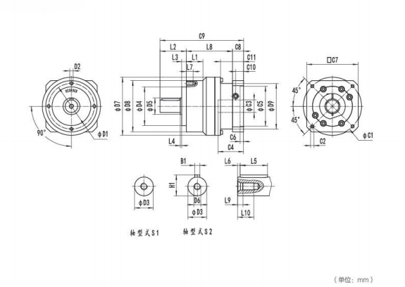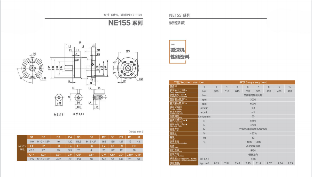 NE155系列超精密背隙行星減速機系列(P0): NE155系列精密背隙行星減速器系列(P1): NE155系列標準背隙行星減速機系列(P2):