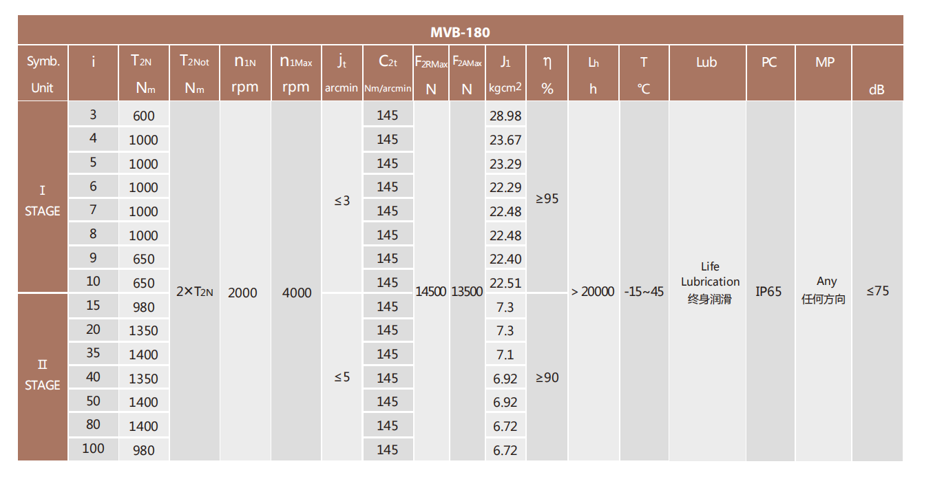 MVB-180-L2系列超精密背隙行星減速機(jī)系列(P0): MVB-180-L2系列精密背隙行星減速器系列(P1): MVB-180-L2系列標(biāo)準(zhǔn)背隙行星減速機(jī)系列(P2):