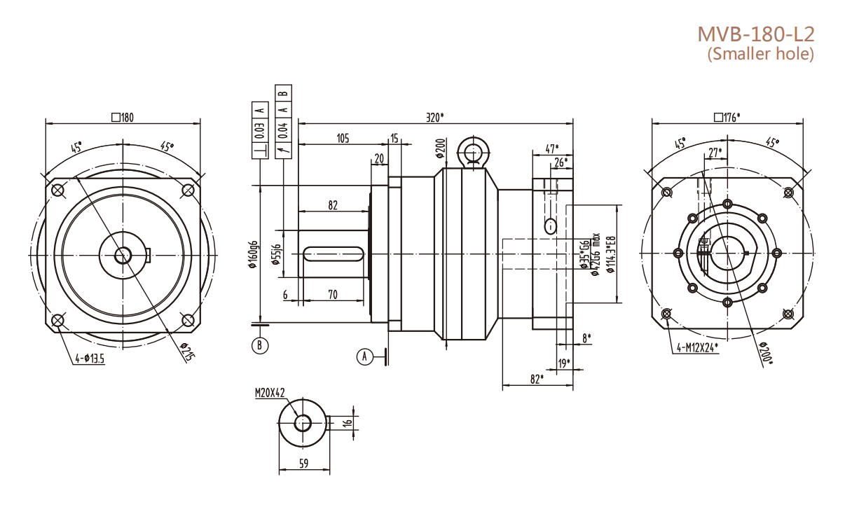 MVB-180-L2系列精密行星減速器型號尺寸與圖紙