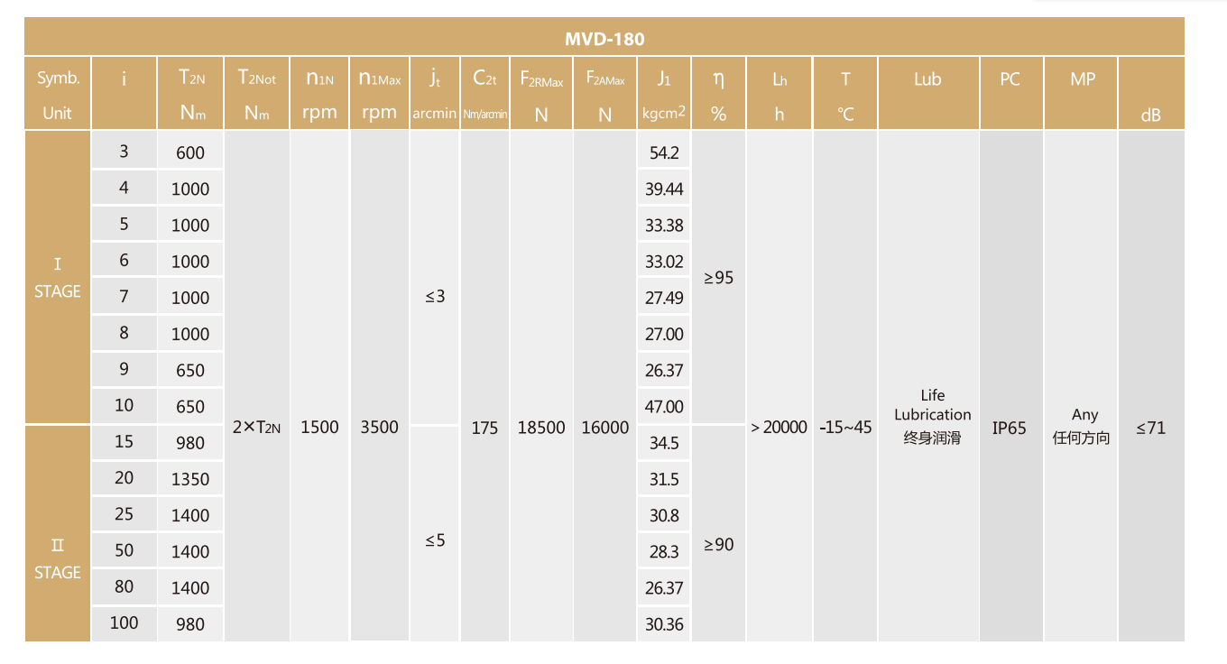 MVD-180-L2系列超精密背隙行星減速機系列(P0): MVD-180-L2系列精密背隙行星減速器系列(P1): MVD-180-L2系列標(biāo)準(zhǔn)背隙行星減速機系列(P2):