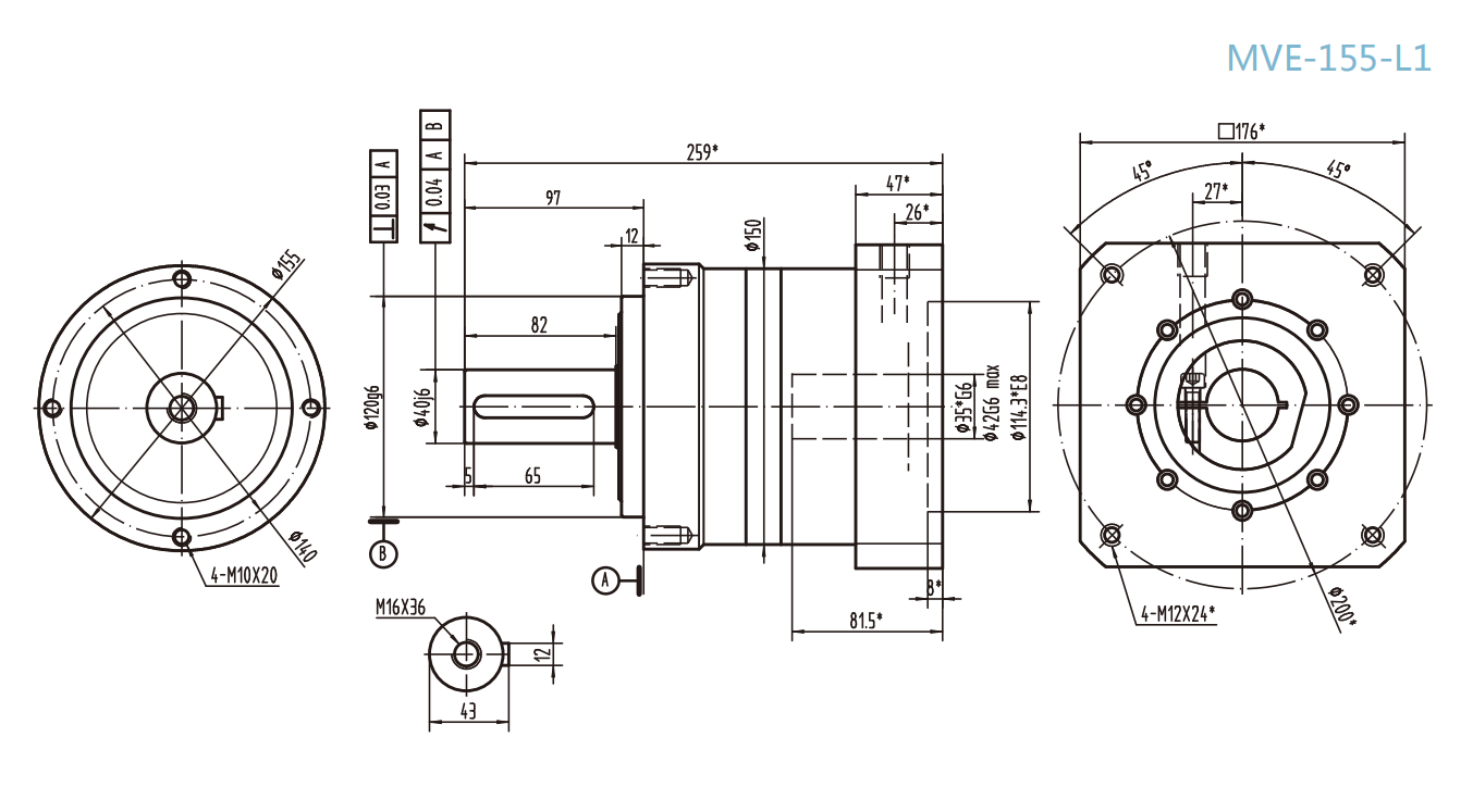 MVE-155-L1系列精密行星減速器型號尺寸與圖紙