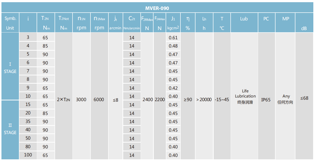 MVER-090-L1系列超精密背隙行星減速機系列(P0): MVER-090-L1系列精密背隙行星減速器系列(P1): MVER-090-L1系列標準背隙行星減速機系列(P2):