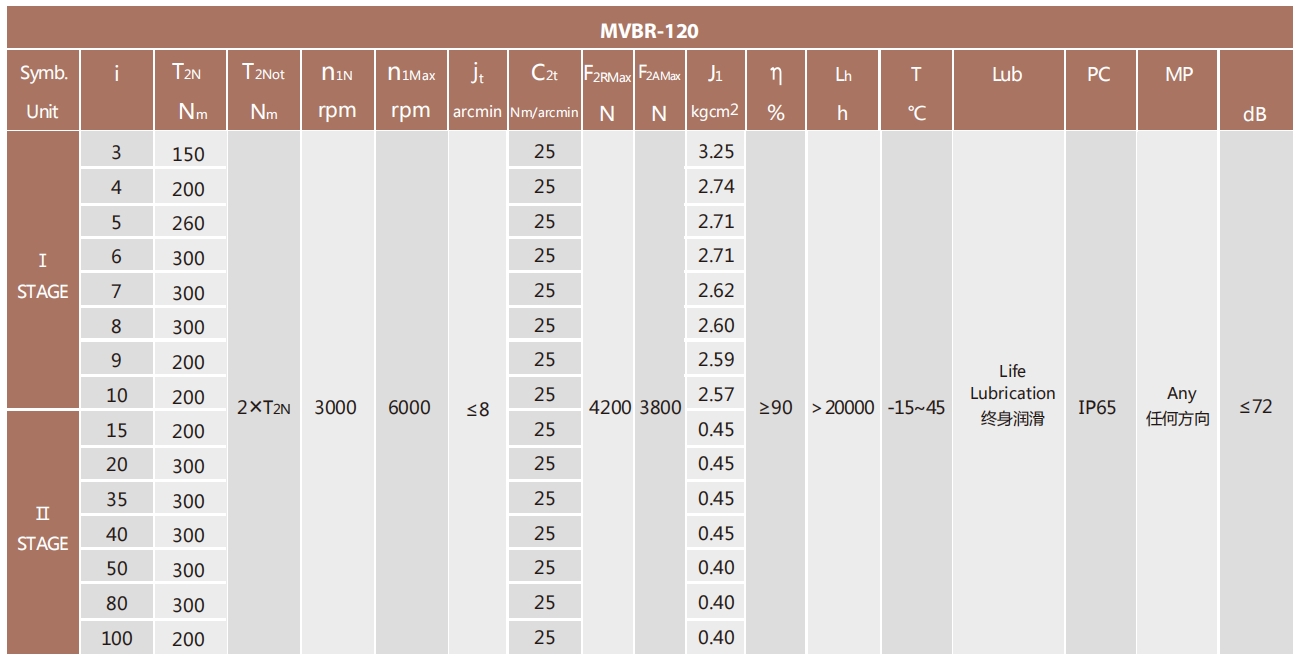 MVBR-120-L1系列超精密背隙行星減速機系列(P0): MVBR-120-L1系列精密背隙行星減速器系列(P1): MVBR-120-L1系列標準背隙行星減速機系列(P2):