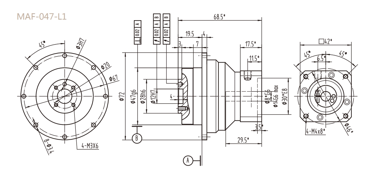 MAF-047-L1系列精密行星減速器型號尺寸與圖紙