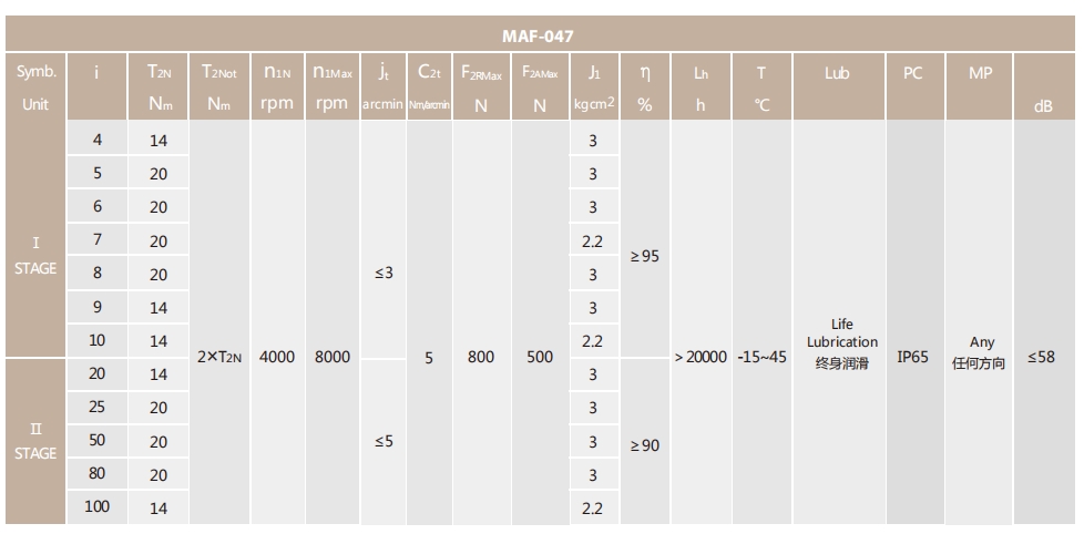 MAF-047-L1系列超精密背隙行星減速機(jī)系列(P0): MAF-047-L1系列精密背隙行星減速器系列(P1): MAF-047-L1系列標(biāo)準(zhǔn)背隙行星減速機(jī)系列(P2):