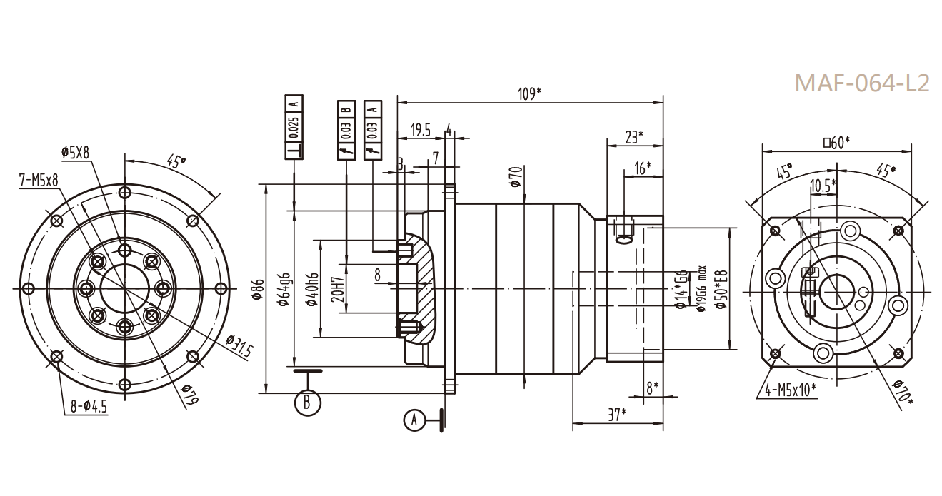 MAF-064-L2系列精密行星減速器型號(hào)尺寸與圖紙