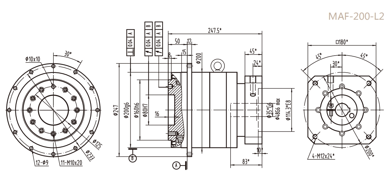 MAF-200-L2系列精密行星減速器型號(hào)尺寸與圖紙