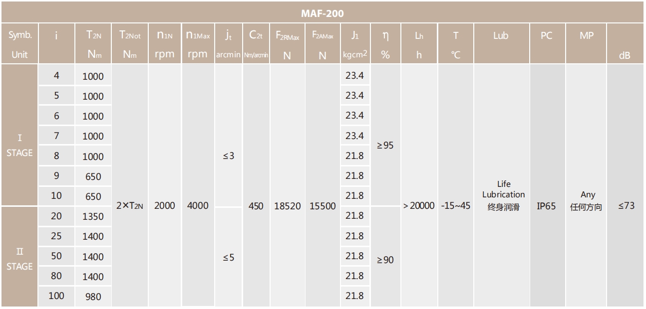 MAF-200-L2系列超精密背隙行星減速機(jī)系列(P0): MAF-200-L2系列精密背隙行星減速器系列(P1): MAF-200-L2系列標(biāo)準(zhǔn)背隙行星減速機(jī)系列(P2):